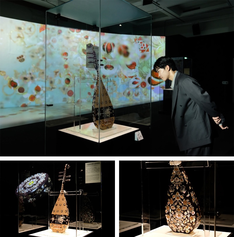 鈴木 螺鈿紫檀五絃琵琶(らでんしたんのごげんびわ)です。展示された再現模造は単なるレプリカとは異なり、材料や技法を当時のまま再現し、職人の手で歳月をかけて作られています。なかでも螺鈿紫檀五絃琵琶は夜光貝の輝きが本当に美しく、人がらくだに乗っている姿や、鳥や花など、絵柄もとてもかわいいなと思いました。