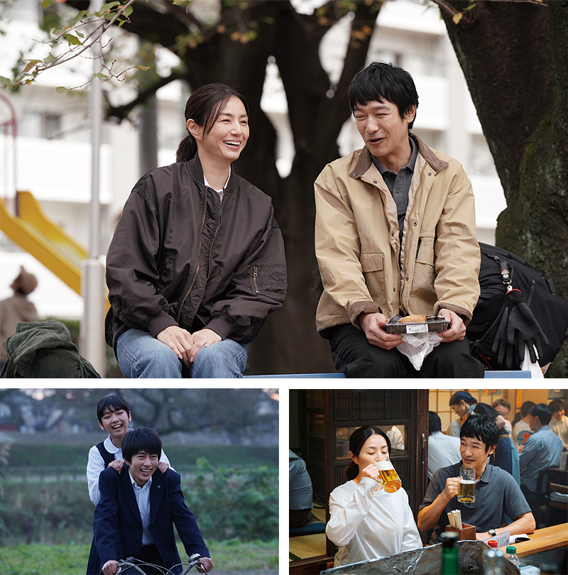 離婚して地元に戻り、印刷会社で働く主人公の青砥健将を演じるのは堺雅人。近年は強烈なキャラクターを演じることが多かった堺雅人だが、本作では普通の中年男性を年相応に演じている。青砥の初恋の人である須藤葉子に、堺雅人とはドラマ『半沢直樹』(2020)以来の共演となる井川遥。つらい過去を抱えながらも今を太く生きる女性を好演する。