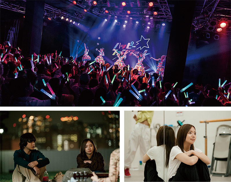 オーディションで「これは自分がやるべき映画だ」と強い思いを語り、主人公・山岡真衣役を射止めたのは、アイドルグループ日向坂46の元メンバーであり、2024年にグループを卒業してからもドラマにバラエティ番組にと引っ張りだこの齊藤京子。初主演映画となった本作で、清廉さの裏に隠されたひとりの女性としての葛藤をリアルに表現し、高い評価を受けている。さらに、真衣と恋に落ちる中学時代の同級生・間山敬に倉悠貴、野心的なマネージャー・矢吹早耶に唐田えりか、事務所の社長・吉田光一に津田健次郎。主人公が所属する劇中アイドルグループ「ハッピー☆ファンファーレ」のメンバーには仲村悠菜、小川未祐、今村美月、桜ひなのら、俳優であり、現役&元アイドル、ミュージシャンでもある面々が集結。音楽プロデューサーを務めるagehaspringsの玉井健二による劇中アイドルソング、数々のアイドルやアーティストを手がける竹中夏海による振り付けも完璧にこなし、映画に説得力を持たせている。