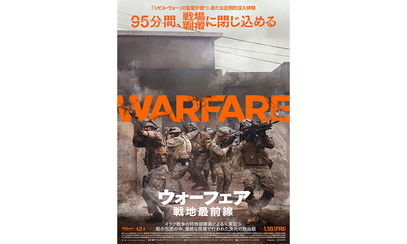 『シビル・ウォー アメリカ最後の日』(2024)においてアメリカ合衆国の分断、そして、いつ起こるとも知れない内戦をリアルに描いた、脚本家で映画監督のアレックス・ガーランドの最新作。共同脚本・監督に迎えたのは、長年の従軍経験と特殊部隊教官の経歴を持ち、退役後はハリウッド映画界でスタントマンやアクション演出を担い、『シビル・ウォー アメリカ最後の日』ではスタント・コーディネーターを務めたレイ・メンドーサ。メンドーサの実体験をもとに同胞たちにも話を聞き、アメリカ軍の特殊部隊の小隊が2006年にイラクで陥った危機的状況をリアルに再現する。